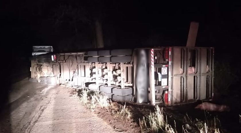 Na noite desta terça-feira (03), o corpo de bombeiros de Palma Sola e a Polícia Militar Rodoviária do 17º Posto, atenderam no KM 8 da rodovia SC 161, conhecida como "curva da vaca morta", trecho entre a cidade de Palma Sola ao entroncamento com a BR 280 e Flor da Serra do Sul, a um tombamento, seguida de saída de pista e choque em árvore do caminhão DAF, com placas de Rodeio Bonito/RS, que estava carregados de suínos.