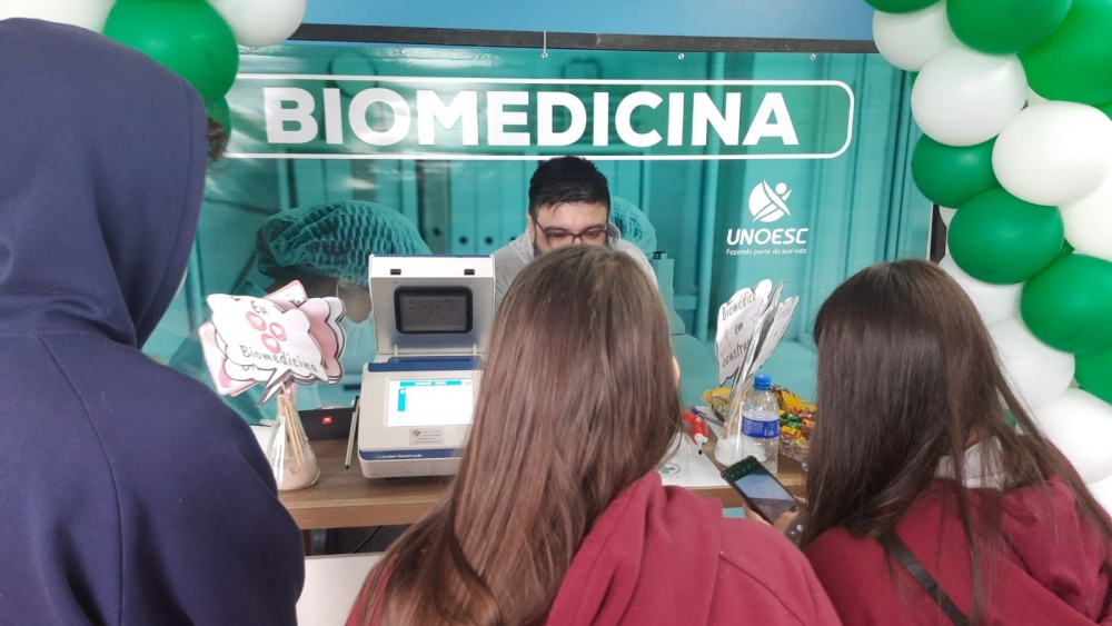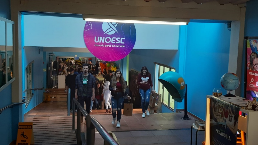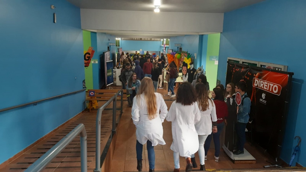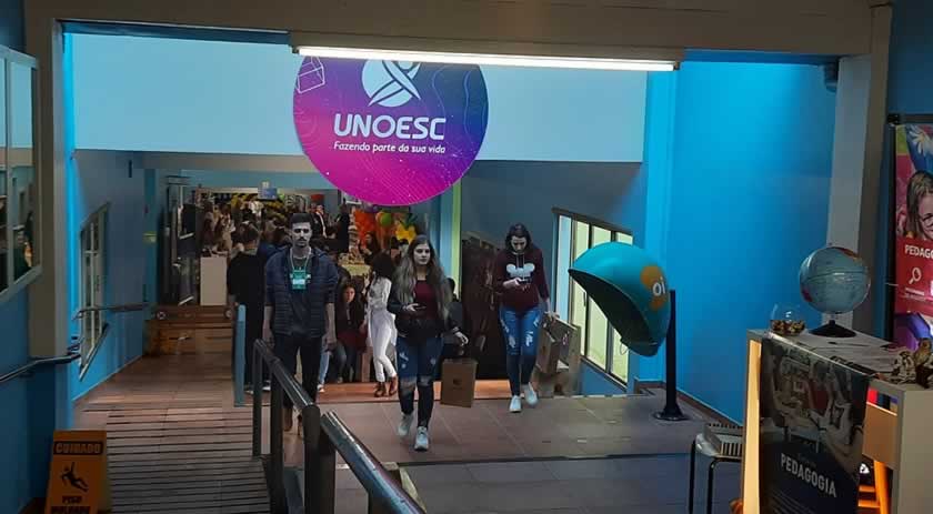 Cerca de 2,6 mil alunos de 60 escolas do Extremo-Oeste tiveram a oportunidade de conhecer toda a estrutura da Unoesc São Miguel do Oeste, durante a 4ª Feira das Profissões, realizada nos dias 6 e 7 de outubro. Os visitantes puderam acompanhar o dia a dia dos profissionais formados nos 20 cursos oferecidos nas cidades de São Miguel do Oeste, São José do Cedro, Maravilha e Pinhalzinho. O evento também contou com espaço para esclarecimentos sobre Bolsas de Estudos, intercâmbio, apresentações culturais, exposição de materiais das Polícias Civil, Militar e Ambiental, Exército e oferta de estágios pelo CIEE.