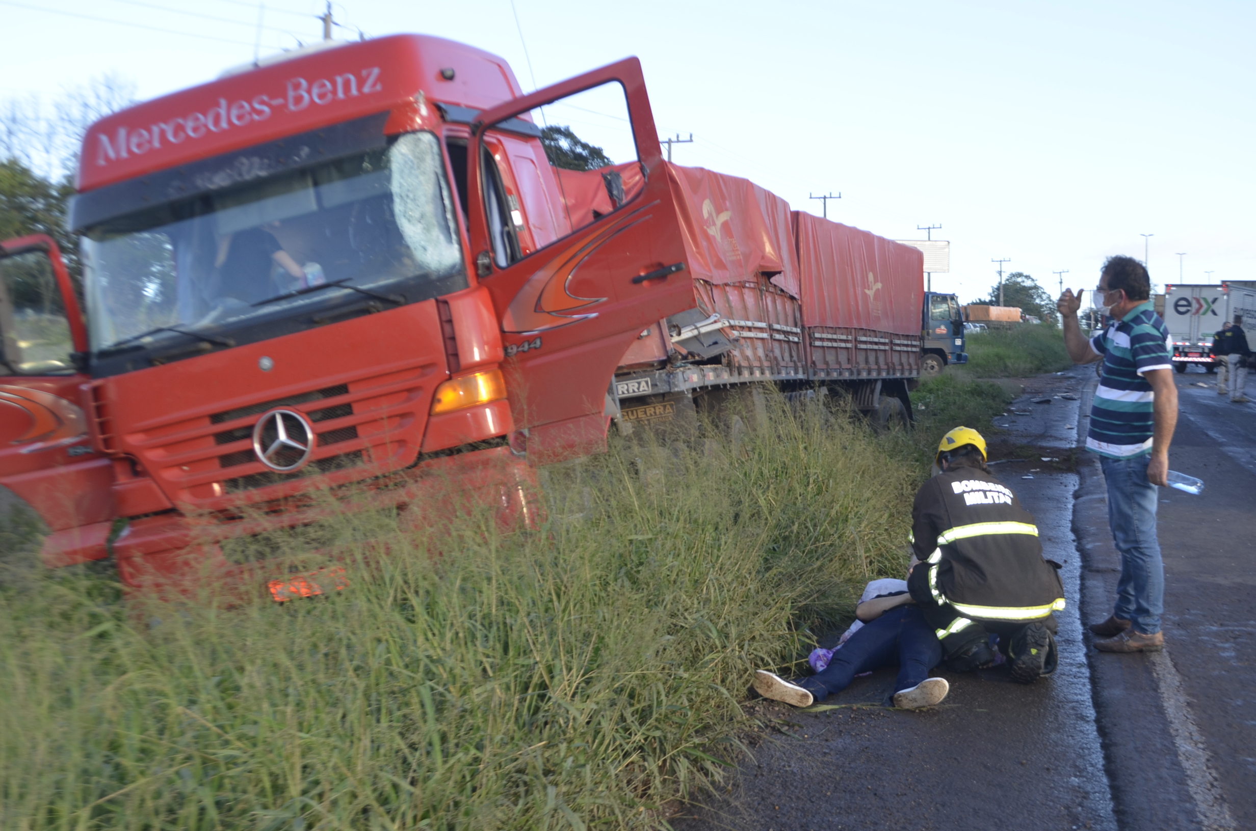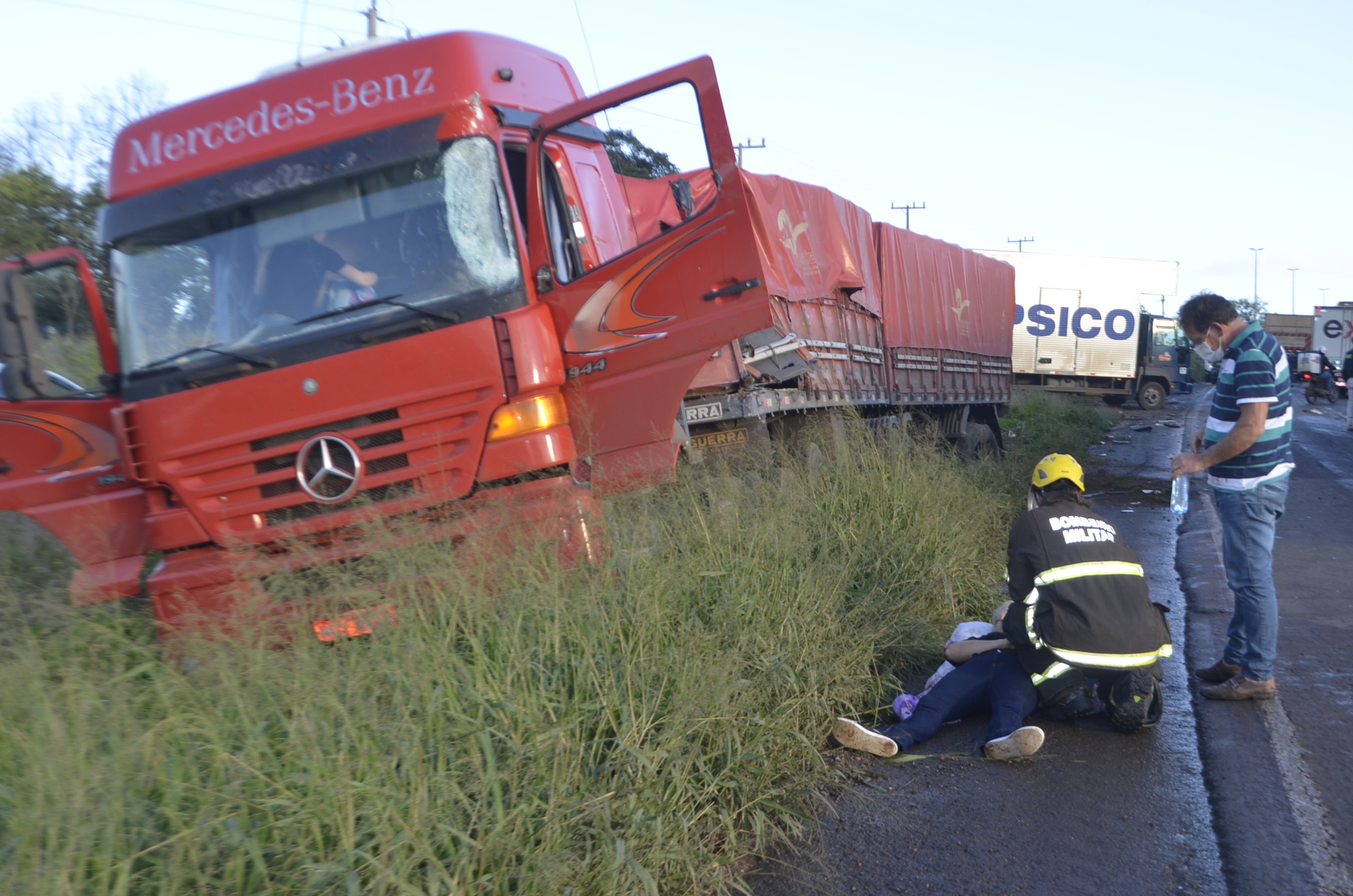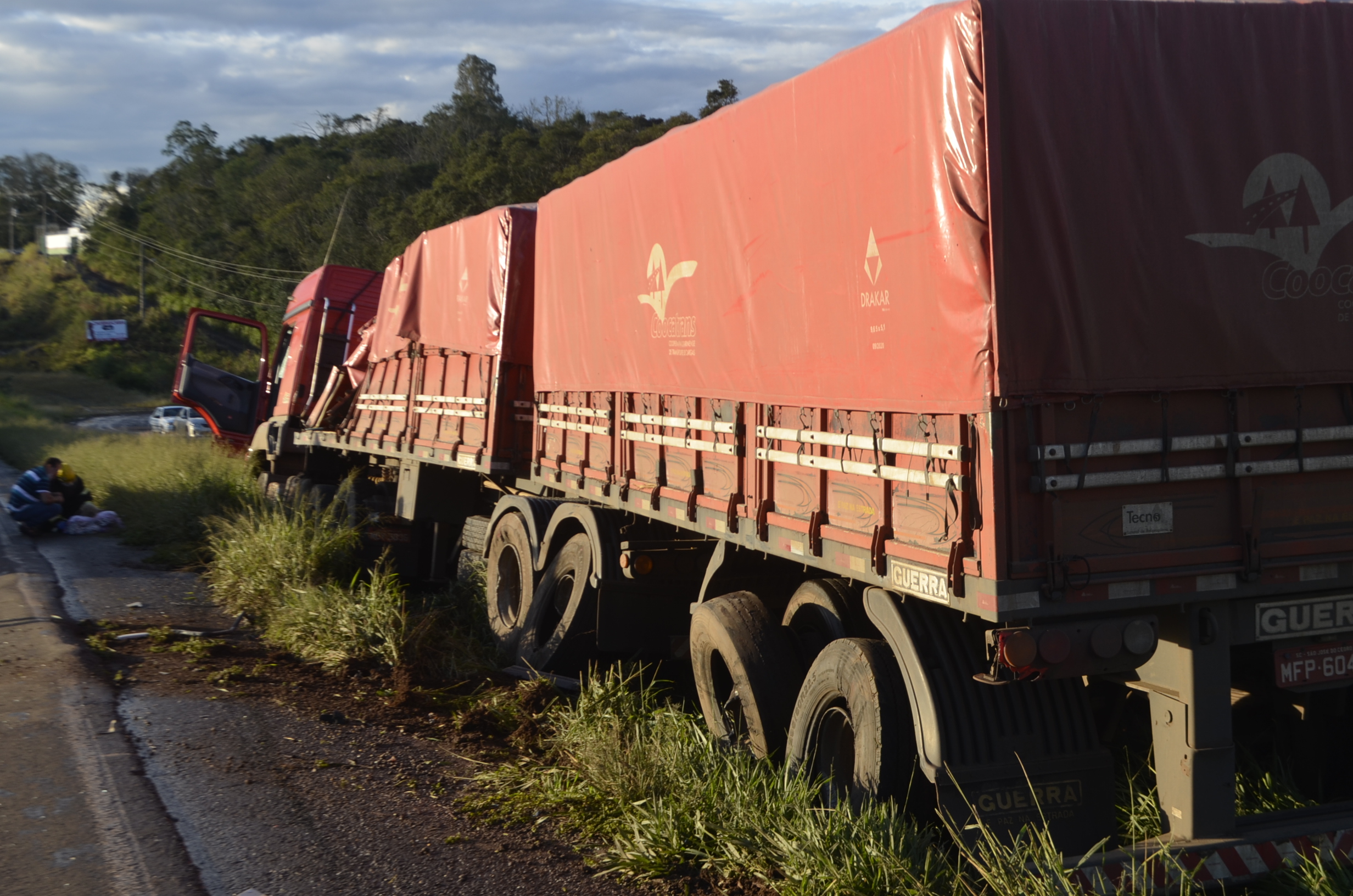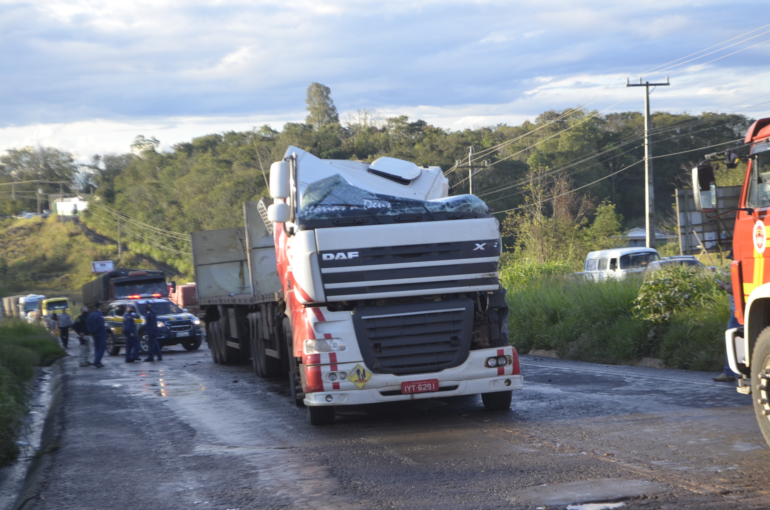 De acordo com informações apuradas pela reportagem no local, se envolveram na batida frontal uma carreta de Cruzeiro do Sul/RS e uma carreta de São José do Cedro. O condutor do RS sofreu ferimentos e foi encaminhado por militares do Corpo de Bombeiros para o Hospital Regional. Apesar da cabine ter ficado destruída o motorista, por sorte apresentava ferimentos leves.