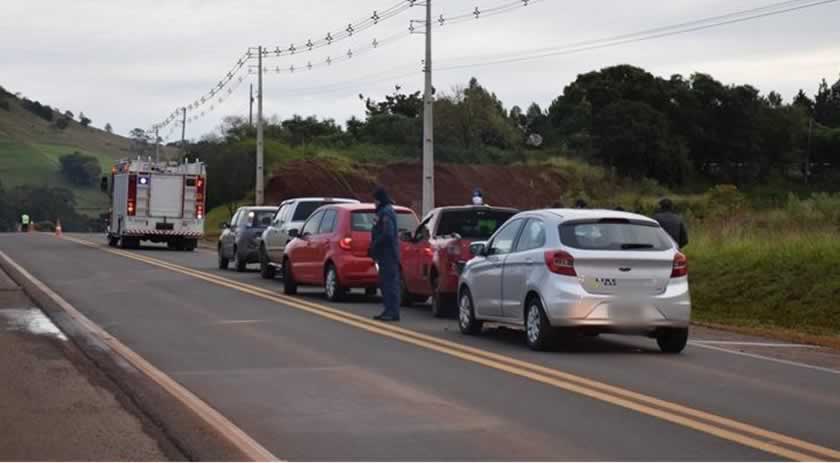 Por volta das 07h57 desta segunda-feira, 28, foi registrado em acidente de trânsito do tipo engavetamento envolvendo 5 veículos, uma Fiat Uno, uma GM S10, um VW Fox, uma Chevrolet Montana e um Ford KA.