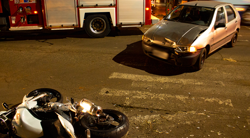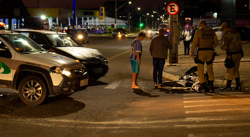 A colisão envolveu o veículo Fiat/Palio emplacado em Palmitos e a motocicleta Honda/CB 300 emplacada em São Miguel do Oeste.