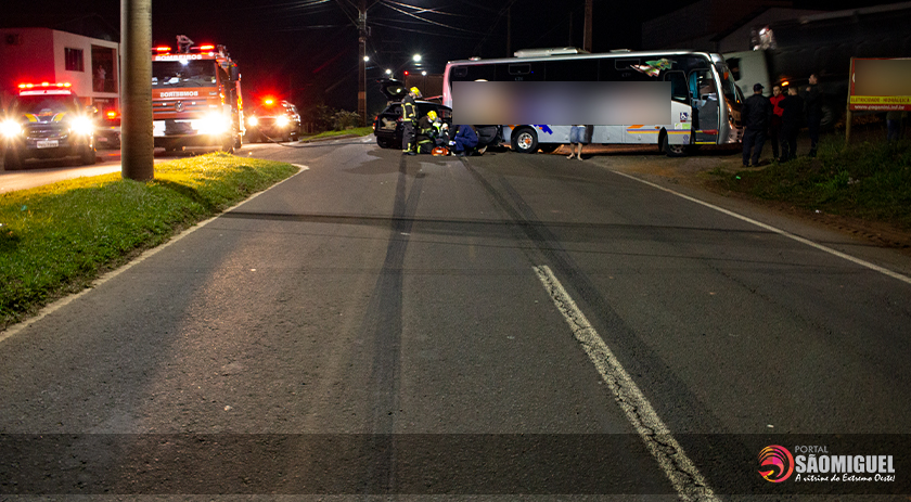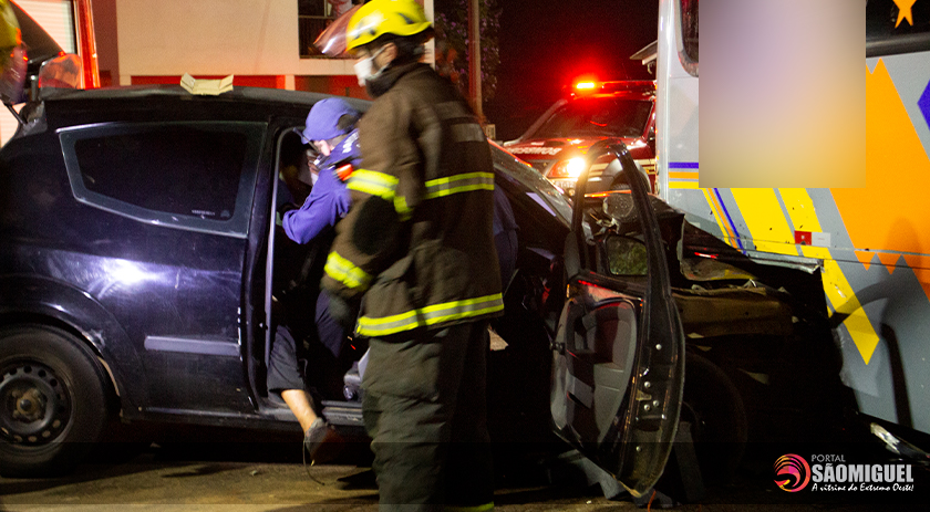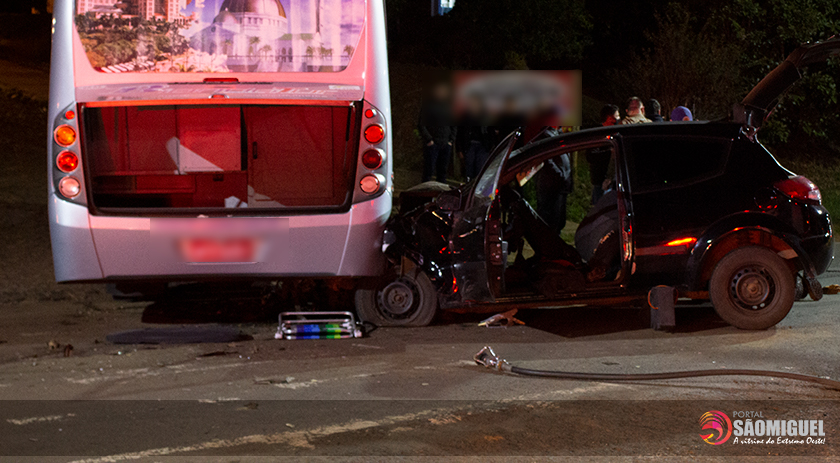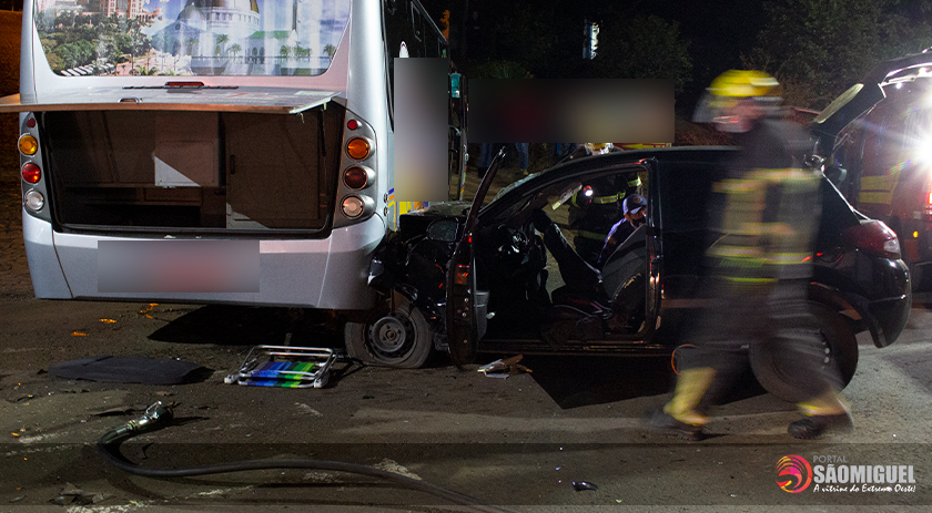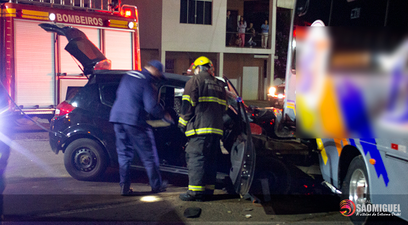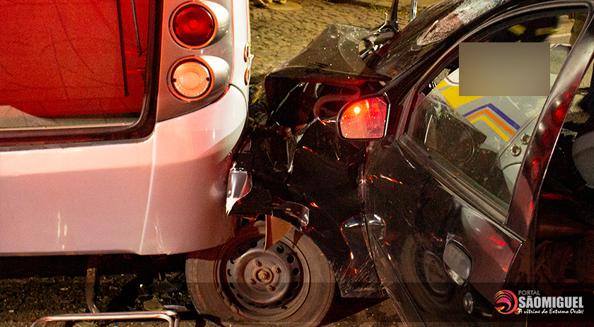 O acidente envolveu um Ford/Ka ocupado por 4 pessoas e um ônibus coletivo.