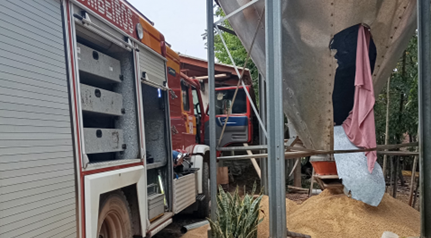 Homem fica pendurado dentro de silo em Riqueza e bombeiros realizam resgate