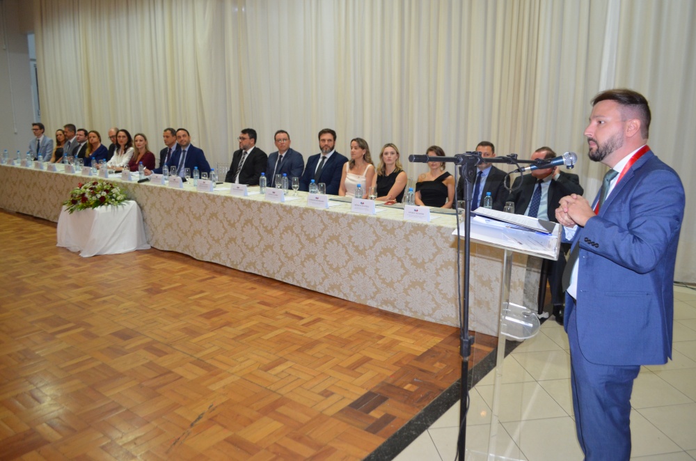 Os trabalhos de posse da Subseção foram conduzidos pelo presidente da Ordem dos Advogados do Brasil, Seção de Santa Catarina, Juliano Mandelli Moreira. “É um momento festivo de posse e diplomação dos novos dirigentes, mas é um momento também de celebração da democracia, porque passamos por um processo eleitoral democrático e participativo, quando a advocacia votou em novos dirigentes, momento em que celebramos a união da nossa classe, pois a OAB somente é forte, quando a advocacia é unidade, com a oxigenação dos novos quadros, porque são novas ideias, novas pessoas, que fazem tudo junto para que a nossa instituição seja a referência que é para a sociedade brasileira”, enaltece Juliano.