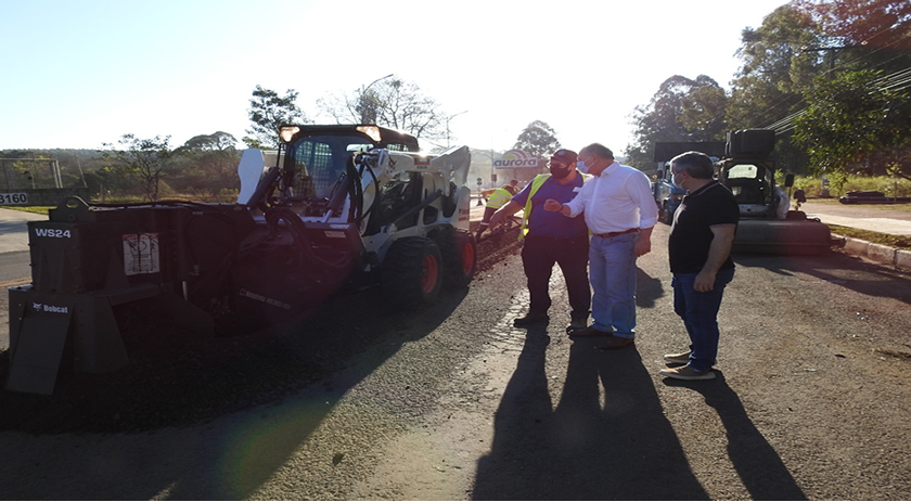 Os trabalhos contemplam drenagem, reperfilagem dos acostamentos e recapeamento completo da pista de rolamento, em um trecho de aproximadamente quatro quilômetros, desde o trevo com a BR 282 até o centro da cidade.