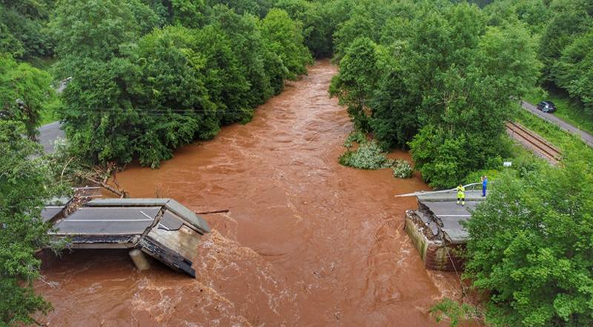 "Em algumas áreas não vimos tanta chuva há 100 anos", disse um porta-voz do serviço meteorológico alemão DWD, acrescentando que nessas regiões, eles "viram mais do que o dobro da quantidade de chuvas", causando inundações e fazendo estruturas entrar em colapso.