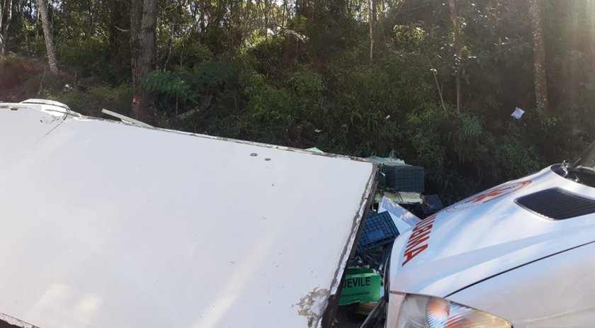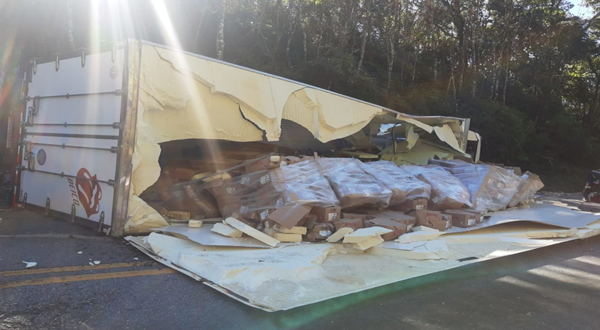 Entre os oito veículos envolvidos, haviam caminhões de carga que tiveram perda nos materiais, como pode ser observado nas fotos do acidente.