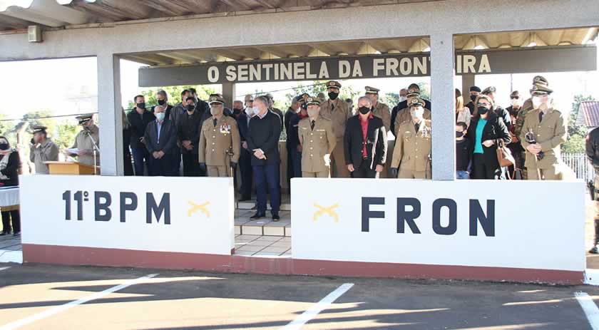 O ato ocorreu na sede do 11º Batalhão de Polícia Militar de Fronteira (BPM/Fron) e o Tenente-Coronel PM Jailson Aurélio Franzen passou o comando da unidade para o Tenente-Coronel PM Alfredo Von Knoblauch.