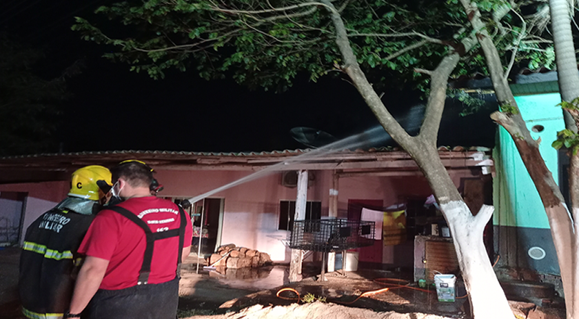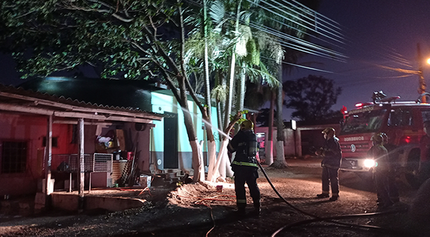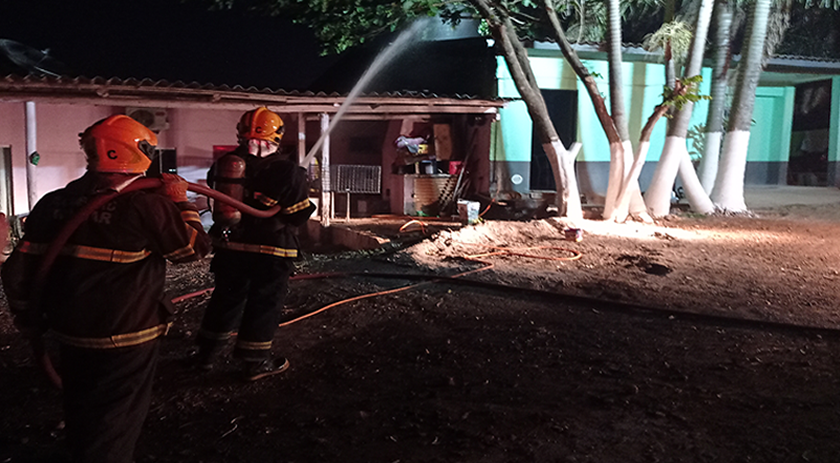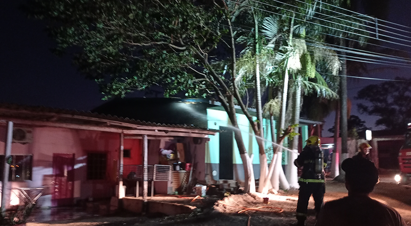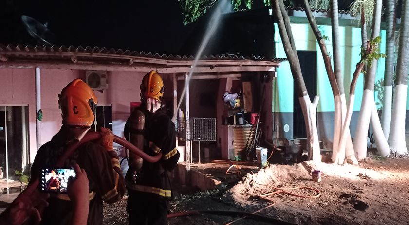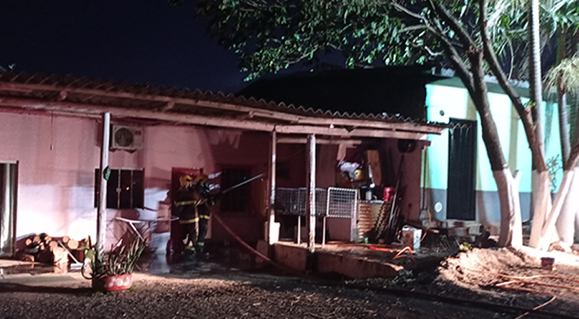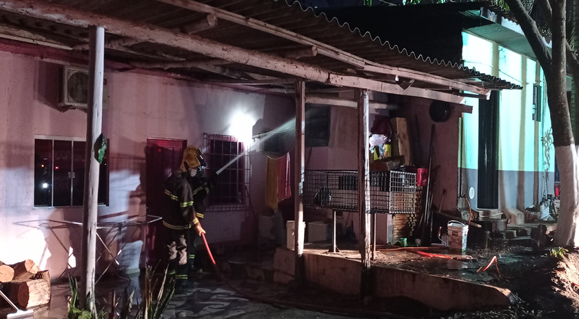 O fogo, que estava concentrado em uma churrasqueira da casa ao lado, acabou se alastrando e atingindo a aba da edificação.