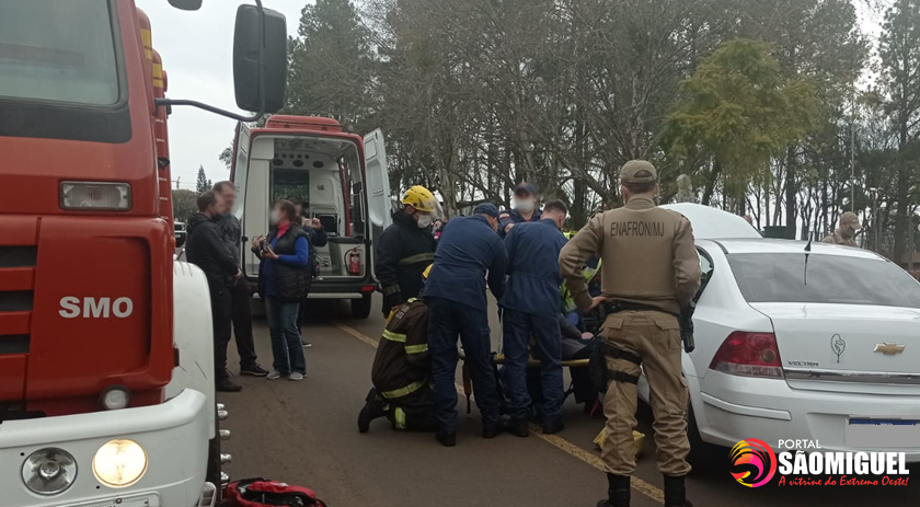 Um acidente de trânsito envolvendo dois veículos deixou pelo menos uma pessoa ferida por volta das 14h15 desta quinta-feira (12), na Rua XV de Novembro, proximidades da Praça Belarmino Annoni, em São Miguel do Oeste.