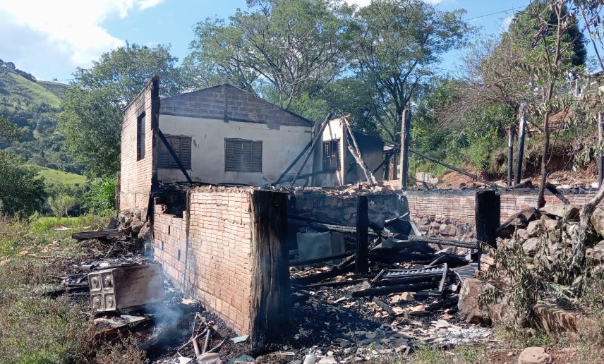 Ocorrência foi registrada na Linha Camargo e consumiu totalmente a edificação