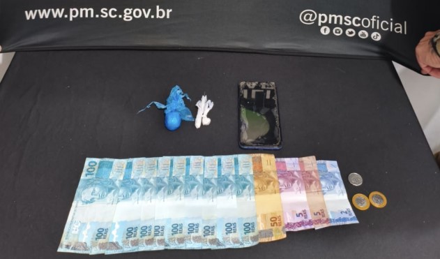 Abordagem da Polícia Militar resultou na apreensão de cocaína, dinheiro e celular