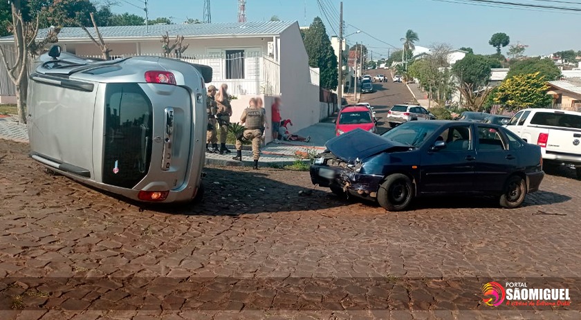 O Corpo de Bombeiros foi acionado na tarde desta quarta-feira (18) para atender ocorrência de colisão entre dois veículos. O VW Polo trafegava na rua 1º de janeiro quando foi surpreendido pela camionete Duster que adentrou a preferencial na esquina com a rua Marques do Herval. Com a força do impacto a camionete chegou a tombar na pista.