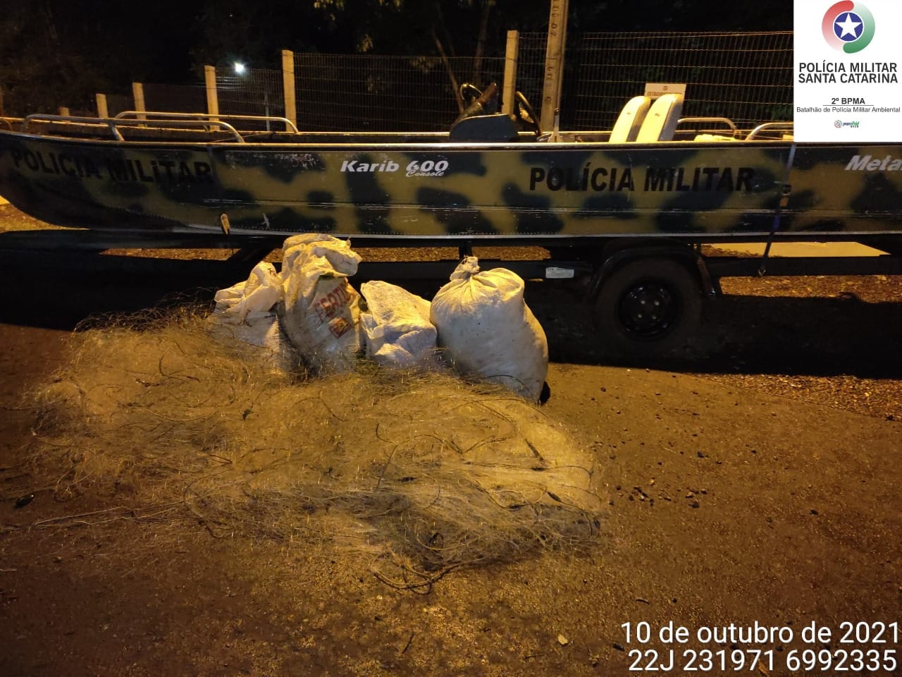 Durante as operações realizadas na última semana, foram apreendidos aproximadamente três mil metros de redes de pesca.