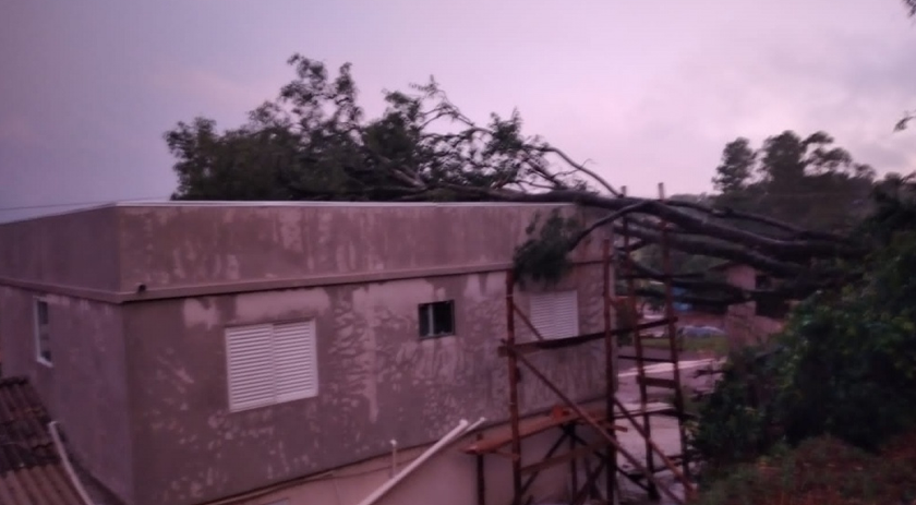 Os fortes ventos e chuvas no Oeste catarinense, por volta das 18h, desta quinta-feira (25), provocaram a queda de uma árvore sobre uma residência na Linha Santo Antônio, interior de Itapiranga. O Corpo de Bombeiros de Itapiranga foi acionado e verificou que a árvore estava sobre a edificação apoiada na estrutura do 2º pavimento e telhado, numa uma altura aproximada de 10 metros.