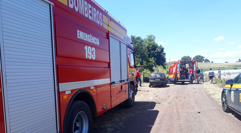O Corpo de Bombeiros atendeu um acidente do tipo colisão lateral seguido de saída de psta, na BR 163 em Guaraciaba.
