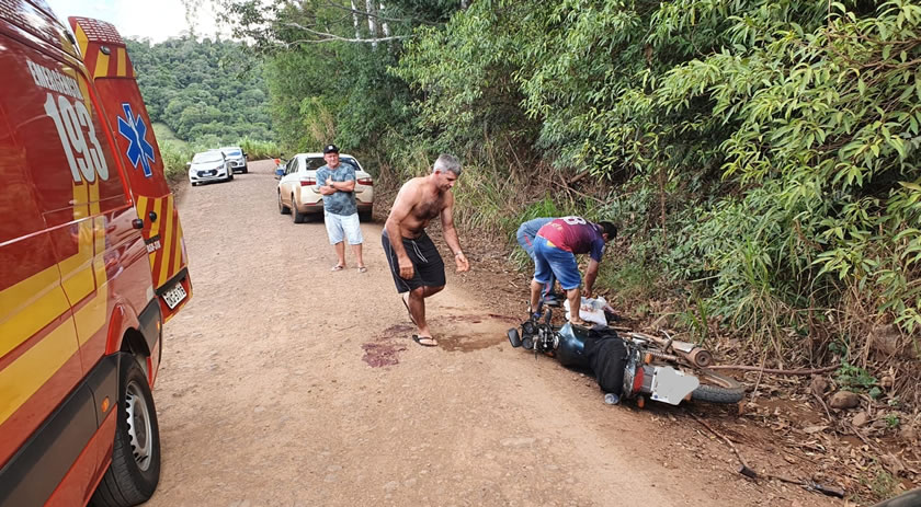 No local havia uma vítima que tratava-se do condutor da motocicleta, um homem de 63 anos, já sem capacete. O mesmo apresentava fartura exposta na região da tíbia e fíbula, ferimento grave na região da panturrilha.