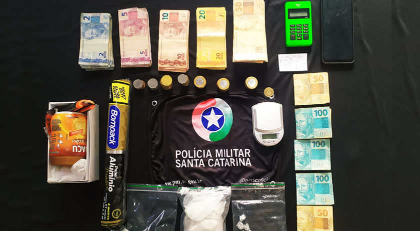 Foram apreendidos também os objetos utilizados para fracionar e embalar a droga, uma balança de precisão, uma máquina de cartão de crédito, dinheiro e o celular.