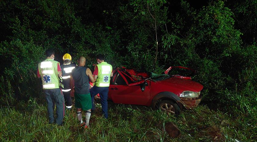 De acordo com informações do Corpo de Bombeiros, uma Fiat/Strada com placas de Dionísio Cerqueira e por razões desconhecidas saiu da pista, vindo a capotar por diversas vezes, o condutor do automóvel um homem de 28 anos morador da comunidade de São Pedro Tobias interior de Dionísio Cerqueira, encontrava-se desorientado, deitado no banco do motorista, apresentando suspeita de pneumotórax e suspeita de fratura de arcos costais.