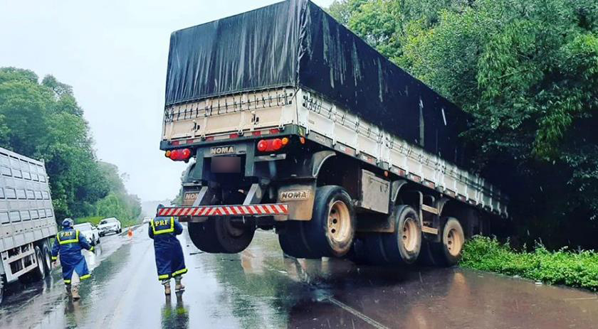 A Polícia Rodoviária Federal (PRF) esteve no local realizando os levantamentos do acidente e fazendo a segurança do trânsito. Por conta do forte impacto entre os veículos, a carreta ficou atravessada sobre a pista.
