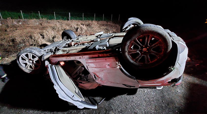 Um veículo Range Rover Evoque, emplacado em Brusque, ficou destruído após um acidente de trânsito na BR 282, próximo a ponte sobre o Rio das Antas, entre São Miguel do Oeste e Maravilha.