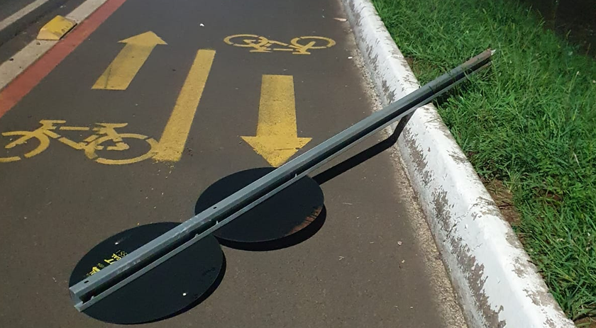 A guarnição seguia em rondas quando visualizou dois homens se pendurando e chutando uma placas de sinalização (Regulamentação – proibido parar e estacionar e circulação exclusiva de