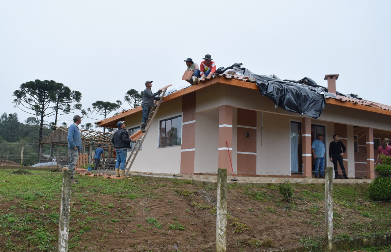 Segundo o Coordenador da Defesa Civil André Carlos Steffanes, diversas árvores foram arrancadas pelo vento e centenas de casas foram destelhadas.