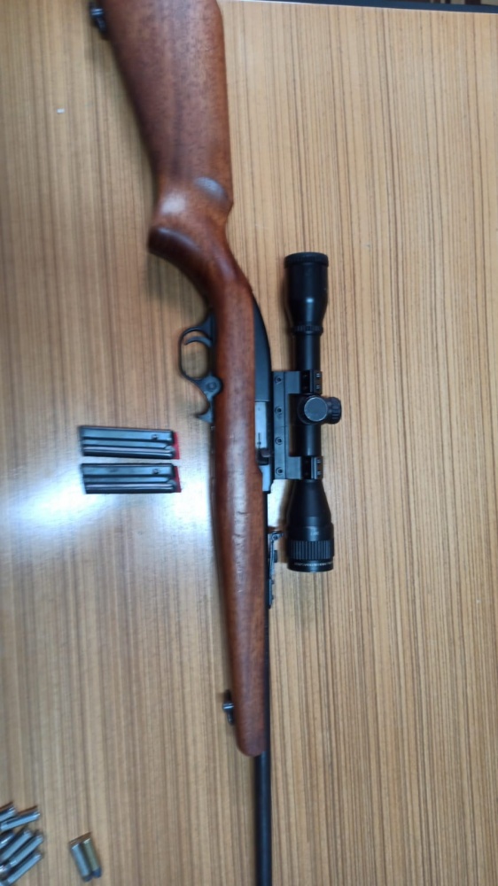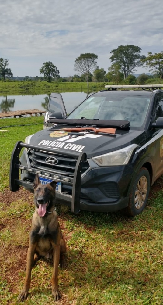 Na residência situada na zona urbana os policiais localizaram e apreenderam um revólver calibre .38, 09 munições calibre .38 SPL e 02 munições calibre 357 Mag. Já na casa situada na zona rural foram localizadas pelo cão farejador COLT, que também participa da “Operação Horus”, uma espingarda calibre 22 e 02 munições calibre 22LR, além de um supressor de ruídos (silenciador), o qual é de uso restrito.