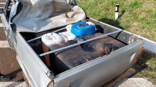 No compartimento de carga, que estava coberto com uma lona, os policiais observaram que estavam sendo transportados vários galões de óleo diesel e dentro do veículo, mais um galão com gasolina. O condutor contou aos policais que havia buscado o produto na Argentina e teria a intenção de vender em São Miguel do Oeste.