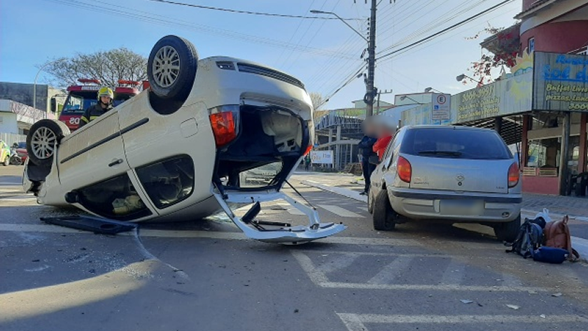 Um carro capotou na manhã desta sexta-feira (12), na Avenida Maravilha, próximo ao semáforo em Maravilha. O acidente mobilizou o Corpo de Bombeiros, que foi até o local e socorreu a motorista de um veículo Pálio.