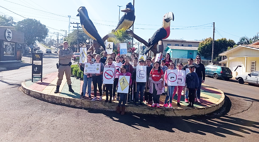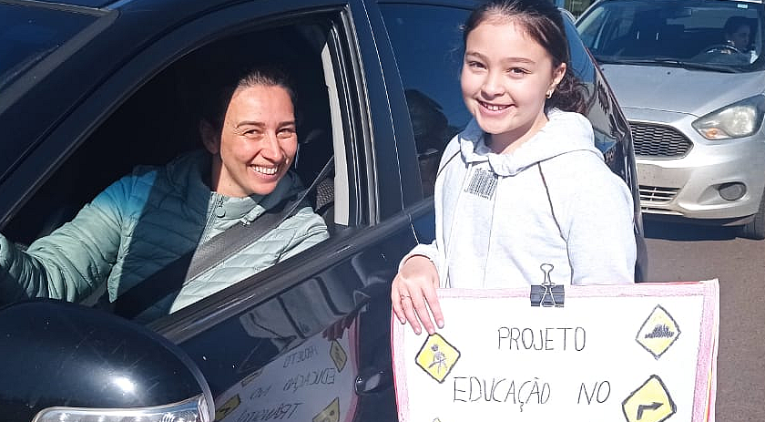 A ação ocorreu na manhã de segunda-feira (22), em que alunos do 4º e 5º ano elaboraram cartazes e realizaram barreiras de trânsito no centro do município, aproveitando a oportunidade para pôr a prova o conhecimento do motorista.