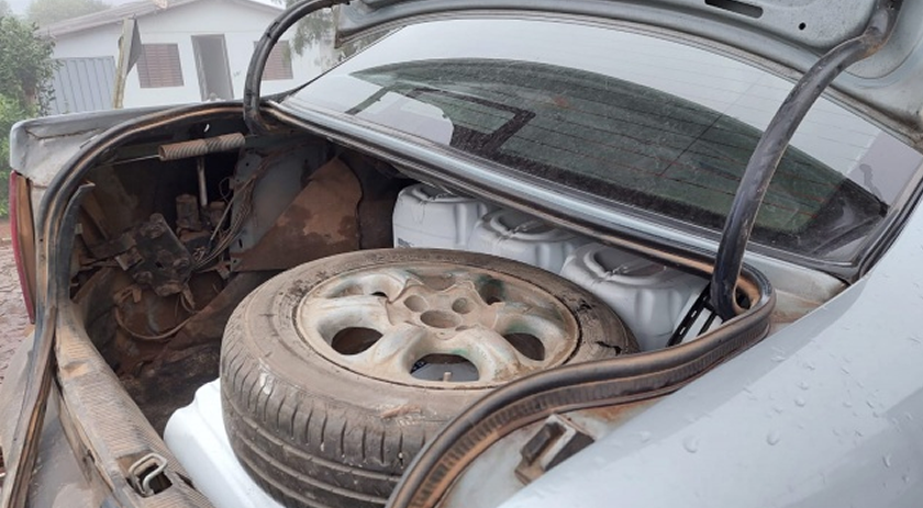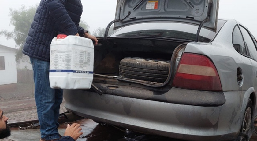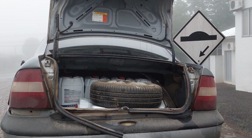 Durante averiguação no veículo foi possível constatar que no porta-malas estavam oito galões de agrotóxicos, os quais foram adquiridos na Argentina pelo motorista do carro.