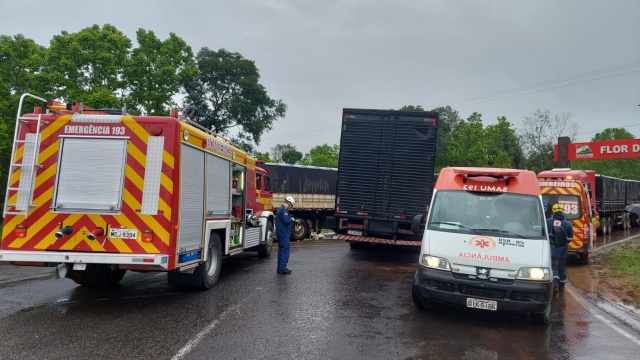 O acidente foi registrado por volta das 12h10 desta sexta-feira (2), no entroncamento da BR-282 com a SC-161, no trevo de acesso a Flor do Sertão. Foi uma colisão entre uma carreta com placas de São José do Cedro e um caminhão de Pato Branco.