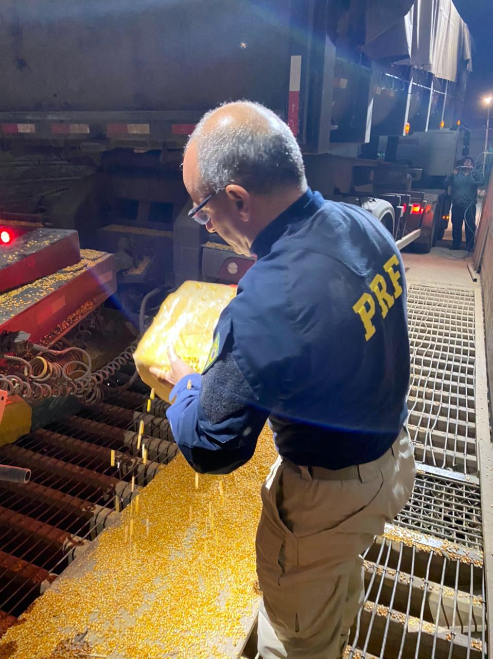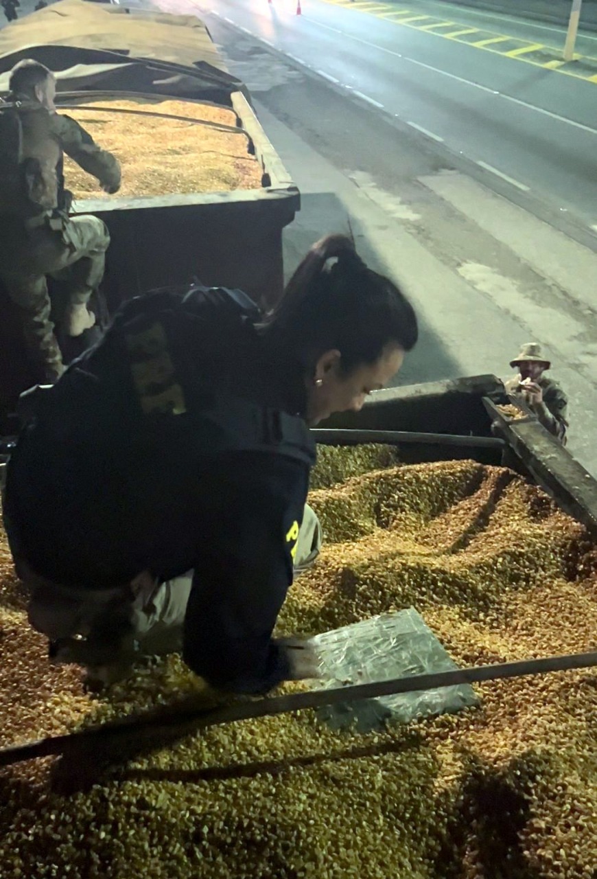 Um flagrante de tráfico de drogas registrado na noite desta quarta-feira, dia 14, apreendeu 17.900 quilos de maconha que estavam embaixo de uma carga de milho em uma carreta abordada na BR-101, em Biguaçu, no Litoral de Santa Catarina.