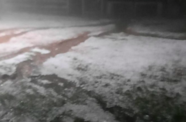 Foto: Granizo acumulado após temporal em São Lourenço do Sul no sábado Valesca Ribeiro / Arquivo Pessoal