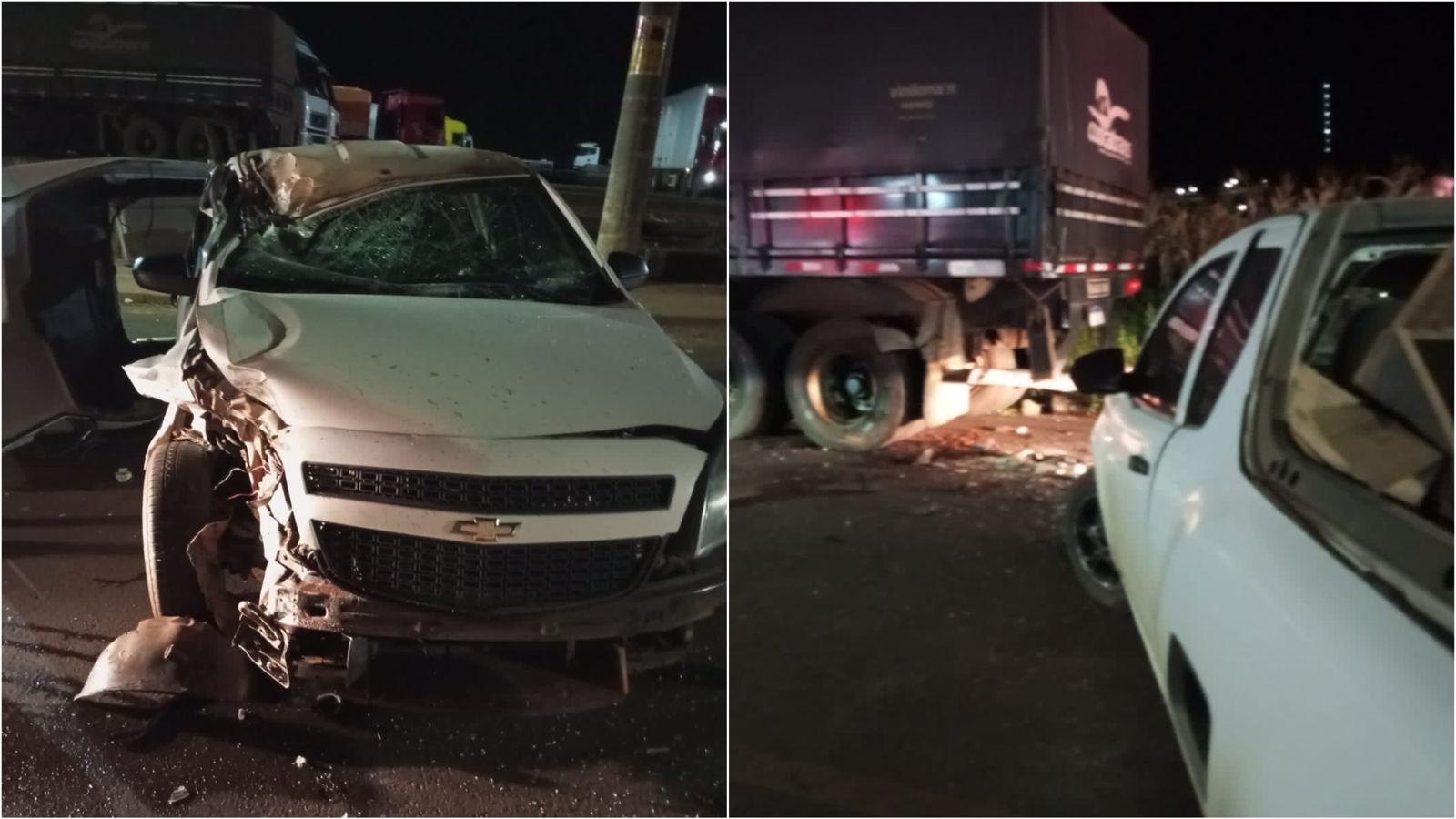 Homem fica ferido ao colidir camionete em carreta estacionada