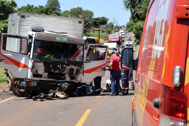 O motorista do caminhão estava preso às ferragens. Ele foi desencarcerado e encaminhado ao Hospital Regional.