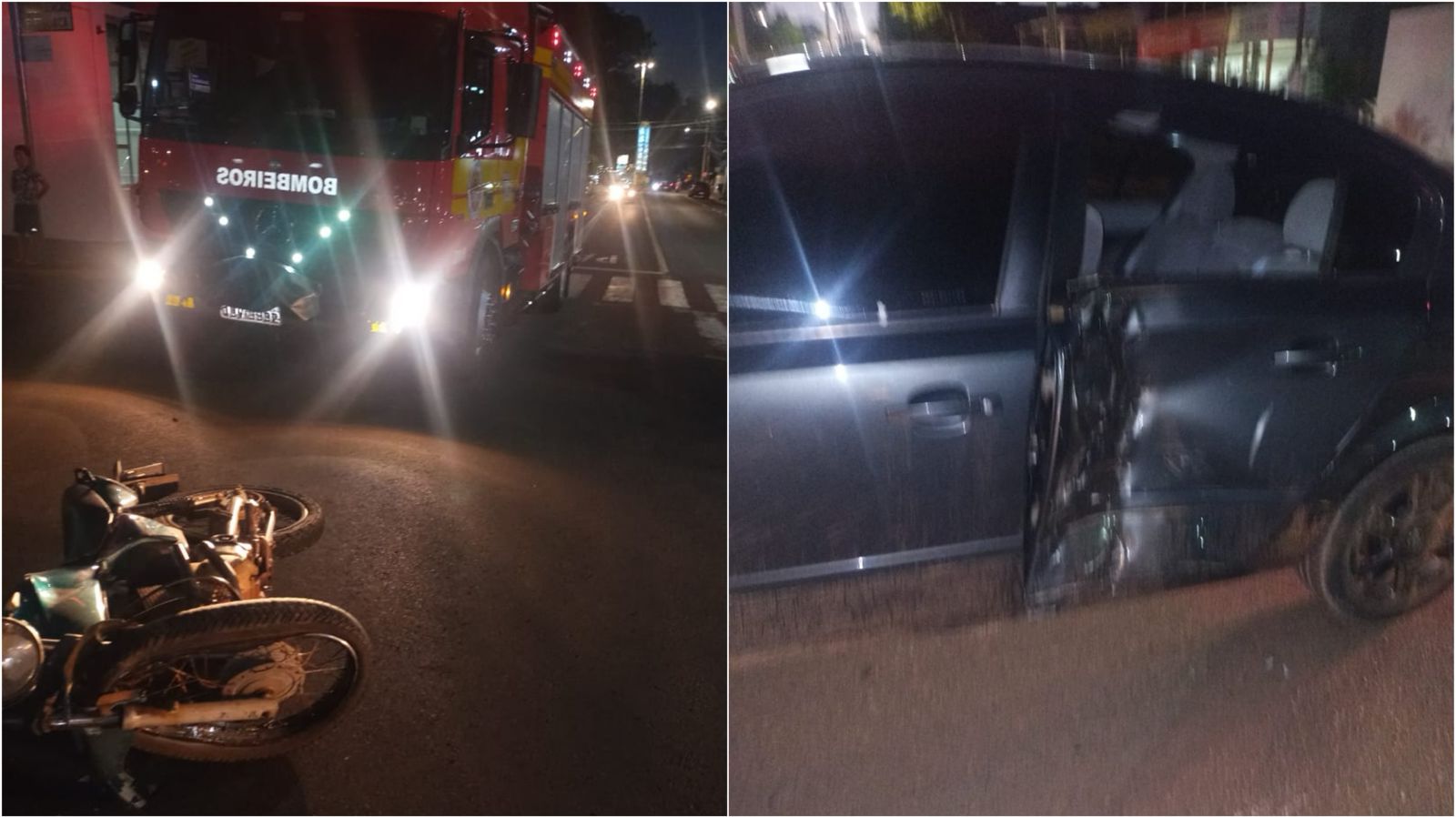 Quando o Corpo de Bombeiros chegou ao local, encontrou a vítima, condutor de uma motocicleta, apresentando suspeita de traumatismo craniano encefálico, corte contuso no lábio e escoriações pelo corpo. Ele foi imobilizado e encaminhado ao hospital, onde recebeu atendimento médico. O motorista do veículo não se feriu.