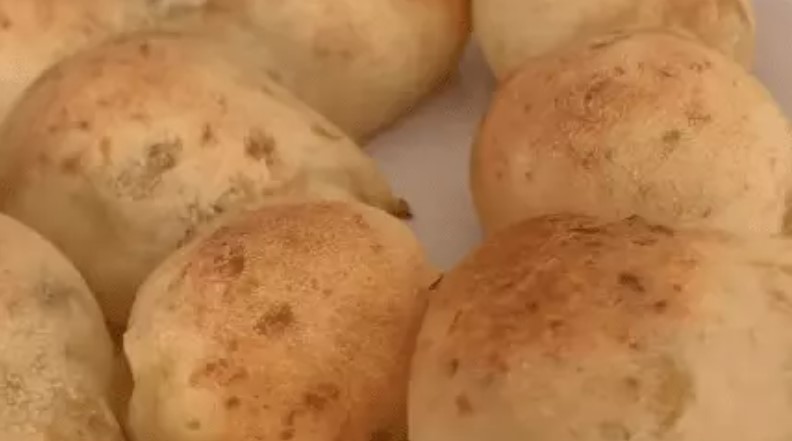 - Amasse a batata-doce e adicione o polvilho, azeite e sal;