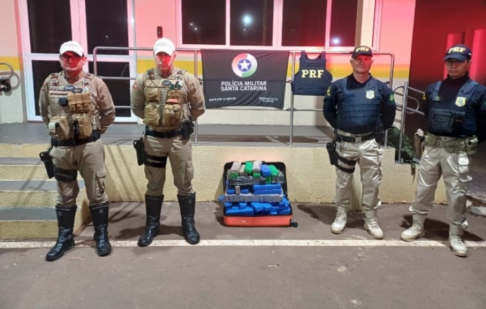 Em ação conjunta de combate aos crimes, a Polícia Militar Rodoviária (PMRv) e a Polícia Rodoviária Federal (PRF), apreenderam no início desta nesta manhã de segunda-feira (25), por volta das 5h, na rodovia SC 480, na altura do quilômetro 157,250 metros, em Chapecó, um veículo Ford/Fiesta, emplacado em Mogi-Guaçu/SP, o qual estava carregado com 72 quilos e 400 gramas de maconha.
