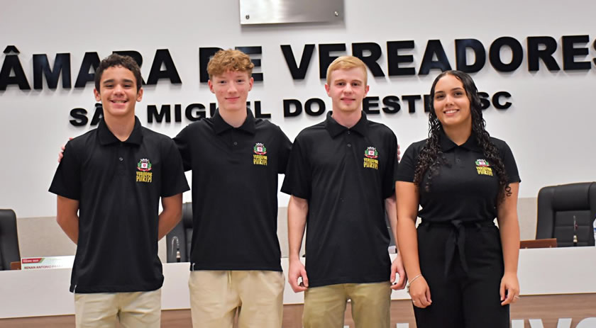 Na sessão também foram empossados suplentes. Allex Becker Kaufmann, representante da Escola Padre José de Anchieta, e Camile Troiani Butinski, representante do Senai, prestaram juramento e assumiram sua vaga de vereador mirim.