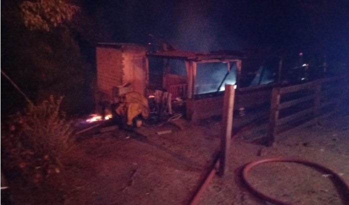 Uma residência de madeira ficou destruída em um incêndio na noite desta terça-feira (02) no interior de Riqueza.