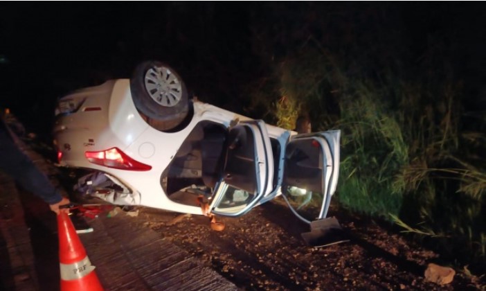 Na madrugada deste sábado (13), o Corpo de Bombeiros de Guaraciaba foi acionado para atender a uma saída de pista seguida de capotamento envolvendo um veículo HB20 com placas de São Miguel do Oeste, na BR-163, próximo ao trevo de Daltro Filho.