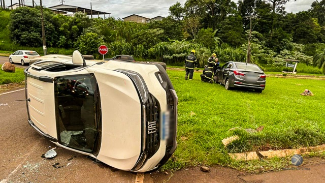 Colisão transversal no trevo de acesso à Descanso mobiliza PM e Bombeiros