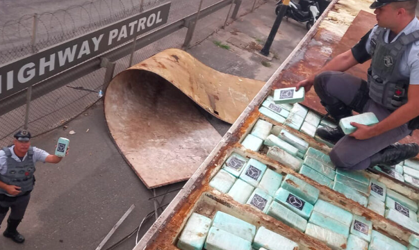 “Durante a busca, foi descoberto que o teto do baú do caminhão havia sido modificado, e dentro dele foram encontrados 420 tabletes de pasta base de cocaína, cuidadosamente ocultos no forro”, diz a PM. O entorpecente totalizou 442 quilos.