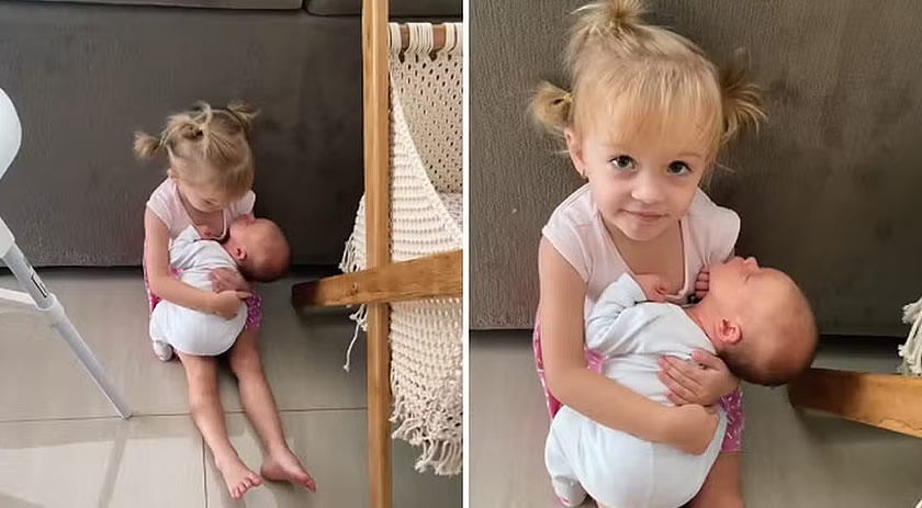 A mãe conta que a filha mais velha é "muito faladeira" e, no vídeo, ela ficou totalmente sem graça. "Ficou sem argumentos e não conseguiu falar nada. Filmei porque vi que as duas estavam bem. A bebê não chorou em nenhum momento, estava dormindo e continuou dormindo no colo da irmãzinha", continuou. "Apesar de ter ficado muito assustada, depois, achei a cena tão linda, um amor lindo de irmãs", completou.