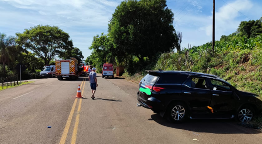 O Corpo de Bombeiros foi acionado por volta das 8h46 para atender o acidente que envolveu VW Polo e Camionete Hillux SW4. Após a colisão frontal, a camionete acabou capotando. Uma idosa que estava no VW Polo precisou ser atendida pelos bombeiros e foi encaminhada ao Hospital São José de Maravilha.