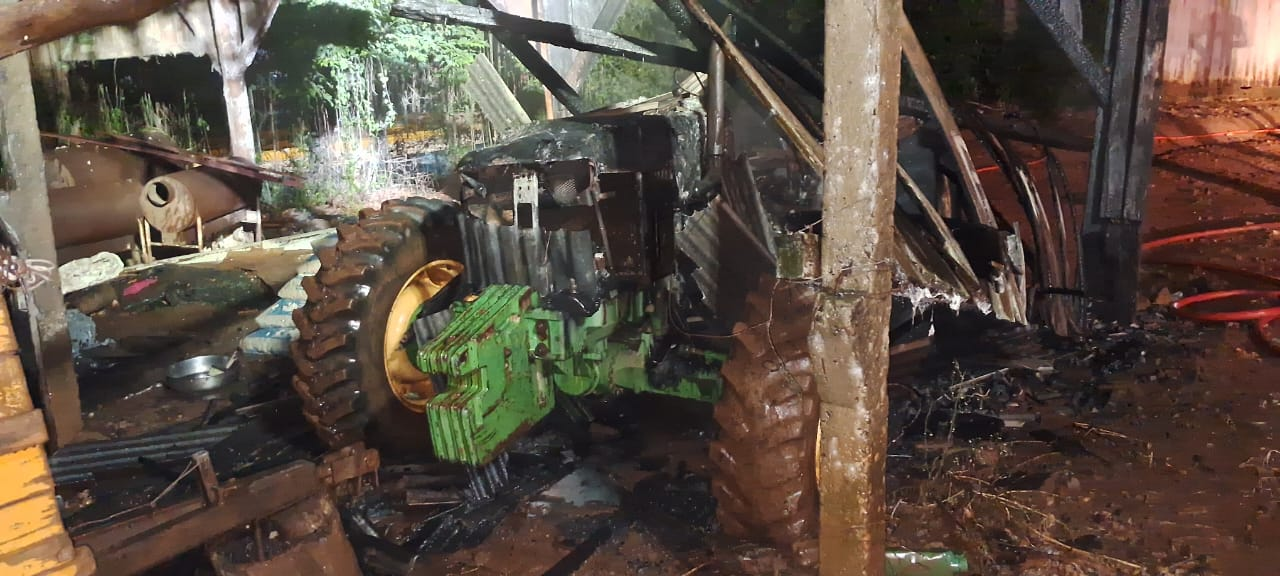 Na madrugada desta quarta-feira (29), um incêndio foi registrado em um trator agrícola que se encontrava dentro de um galpão. Por consequência, parte do galpão acabou sendo atingida O sinistro ocorreu na Linha Três Pinheiros, em Palmitos.
