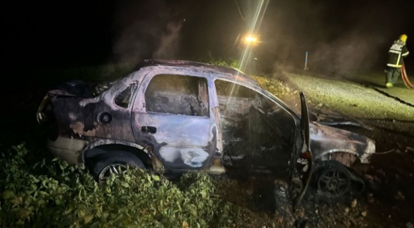 Um jovem de 20 anos ficou ferido após sair da pista e colidir o carro que conduzia contra um poste na noite de quarta-feira (19), na SC-305, em Campo Erê, no Extremo-Oeste catarinense. Em seguida, com o impacto, o veículo ainda pegou fogo e ficou completamente danificado.