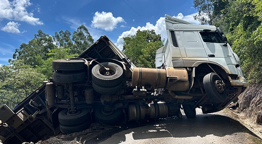 Motorista pulou da cabine antes de o veículo descer um barranco; ninguém ficou ferido